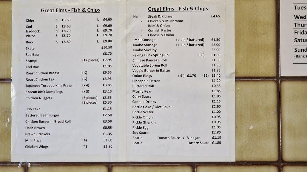 Located in Hemel Hempstead, Great Elms Fish & Chips Takeaway is just a stone's throw away from the Holiday Inn Express, making it a convenient choice for travelers. The takeaway is wheelchair accessible, ensuring a comfortable experience for all. With a focus on takeaway and dine-in services, it accommodates casual lunch seekers and those eager to enjoy its delicious offerings on-site. The inviting atmosphere enhances the charm of this local favorite, as patrons often link it to fond memories of community bonding over crispy fish and chips. Free street parking is available, adding to the convenience for those driving in. Operating every day, this takeaway is a consistent option for satisfying cravings for a classic meal.